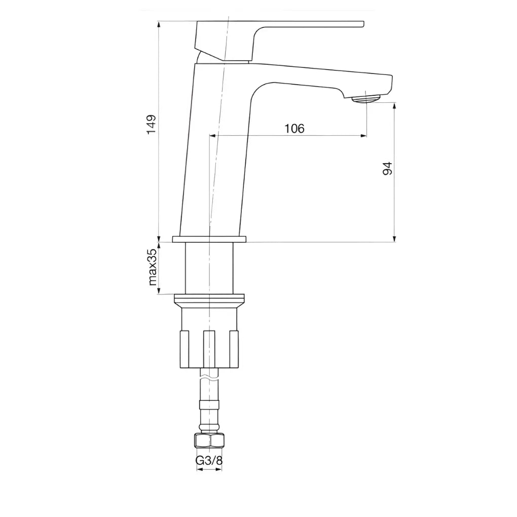 Chromowana bateria umywalkowa TRINNITY bez korka, z mieszaczem Φ30. Klasa Z, przepływ do 5 l/min, jednootworowy montaż, mosiężna konstrukcja.