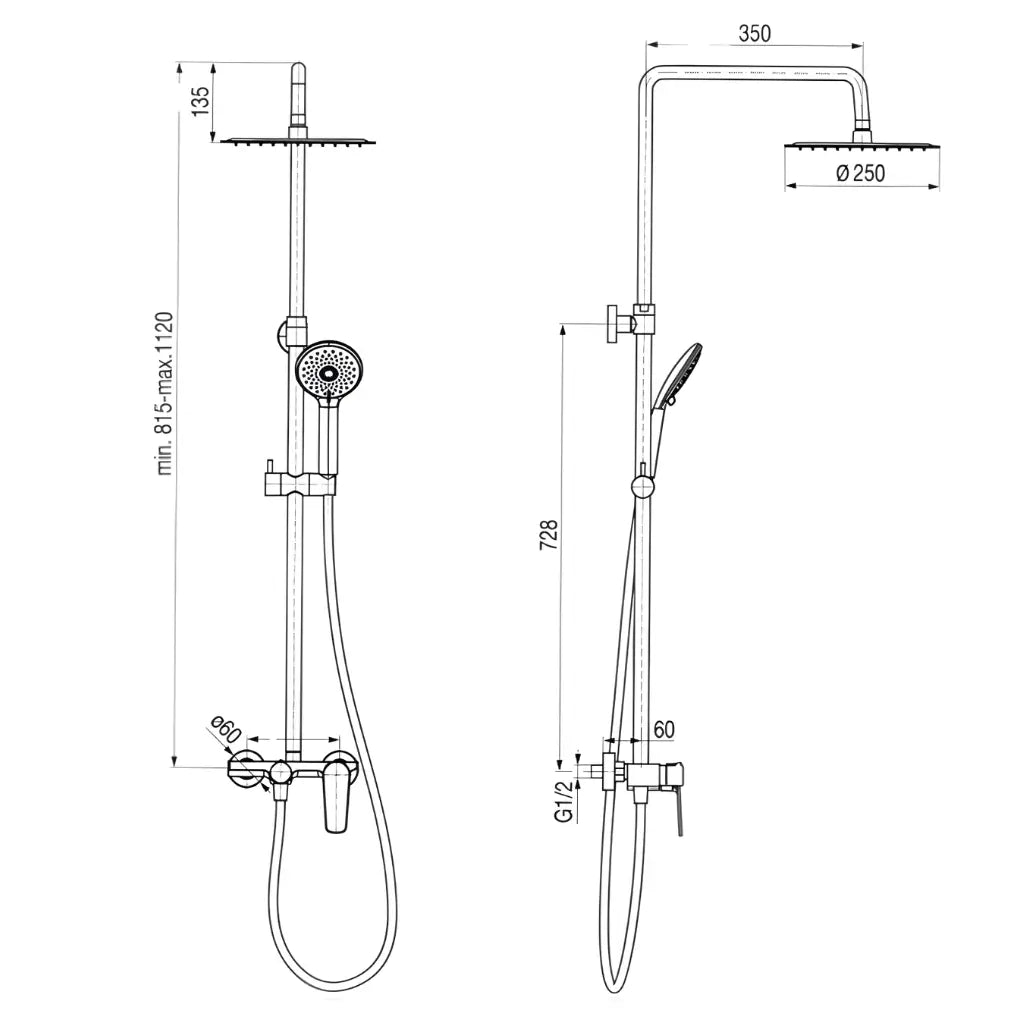 System natryskowy TRINNITY z baterią, deszczownicą ø250 mm, rączką 3S i mieszaczem Φ35. Chrom, montaż natynkowy, max. przepływ 17 l/min.
