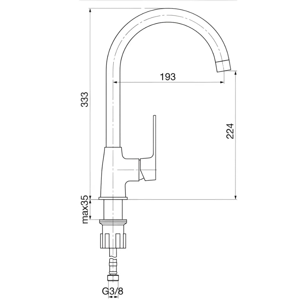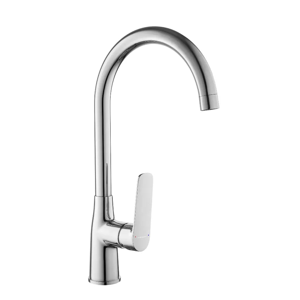 Stojąca bateria zlewozmywakowa TRINNITY z łukową wylewką, mieszaczem Φ30 i przepływem 9 l/min. Mosiądz, kolor chrom, montaż jednootworowy.